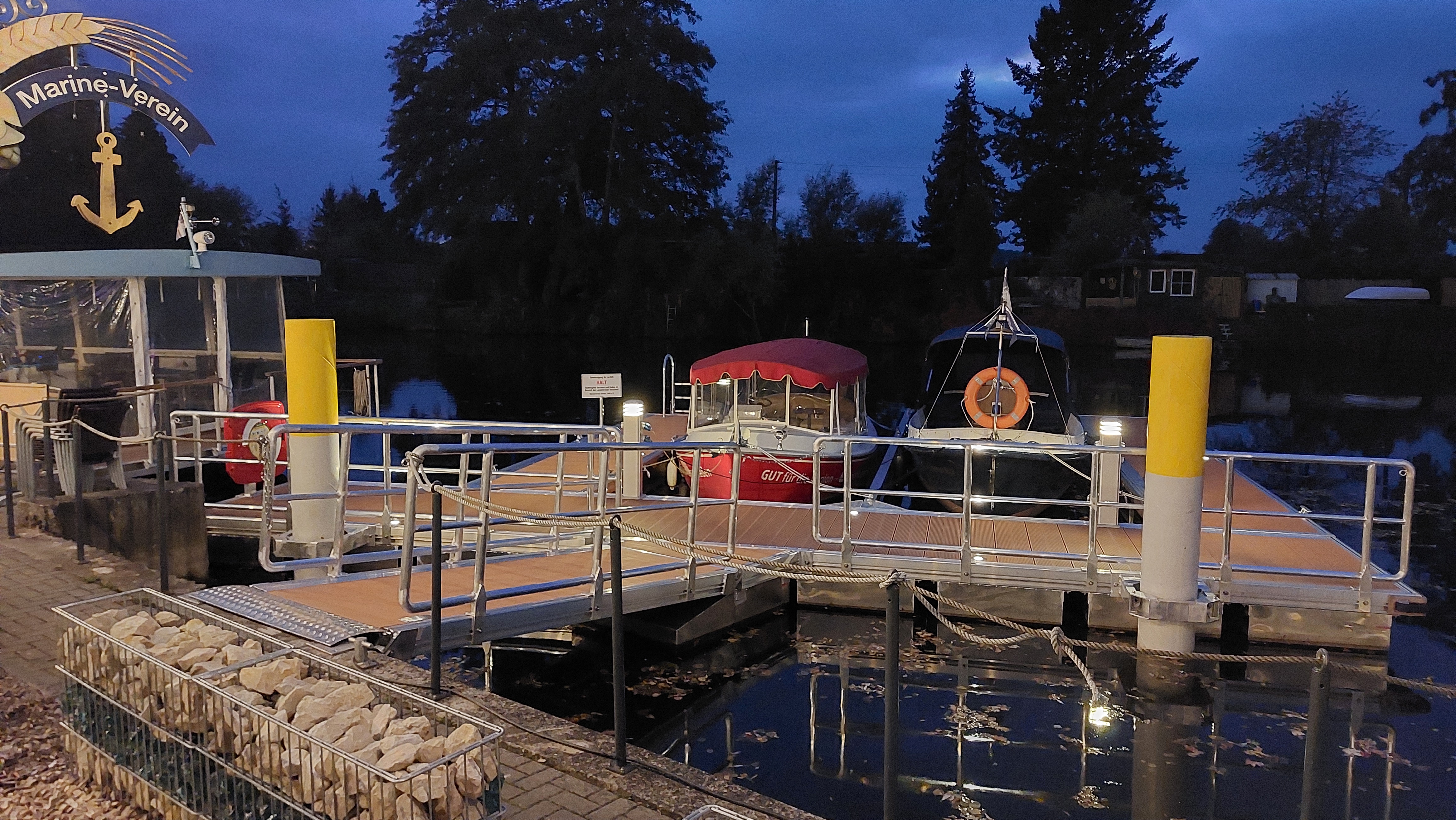 Alles in allem hat die Montage fünf Tage gedauert und alles zusammen rund 100.000 € gekostet. Dafür hat der Marine-Verein nun aber eine Steganlage, die ihresgleichen hier an der Lahn sucht und für die nächsten Jahre eine Hafenanlage bietet.
