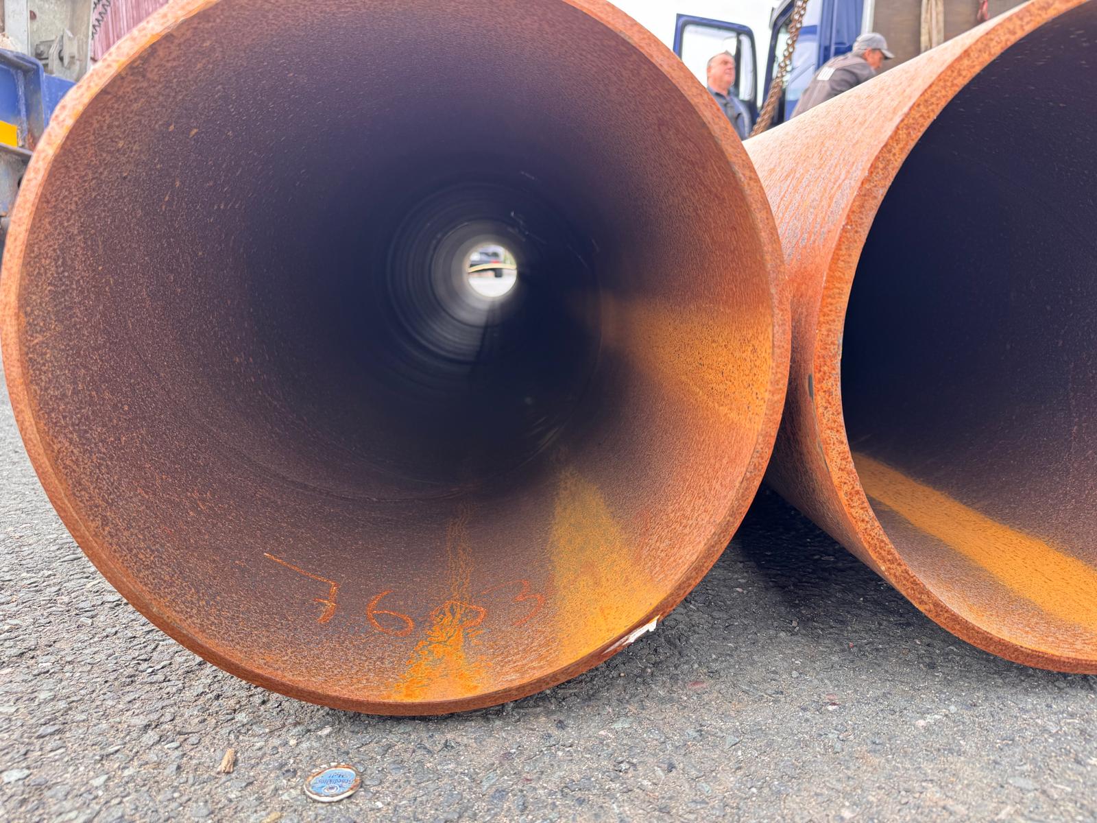 Nachdem die Genehmigungen vorlagen rückte die Firma Fred Babbel aus Mecklenburg-Vorpommern mit Tieflader, Bagger und Ramme an um den Steg zu Wasser zu bringen.
