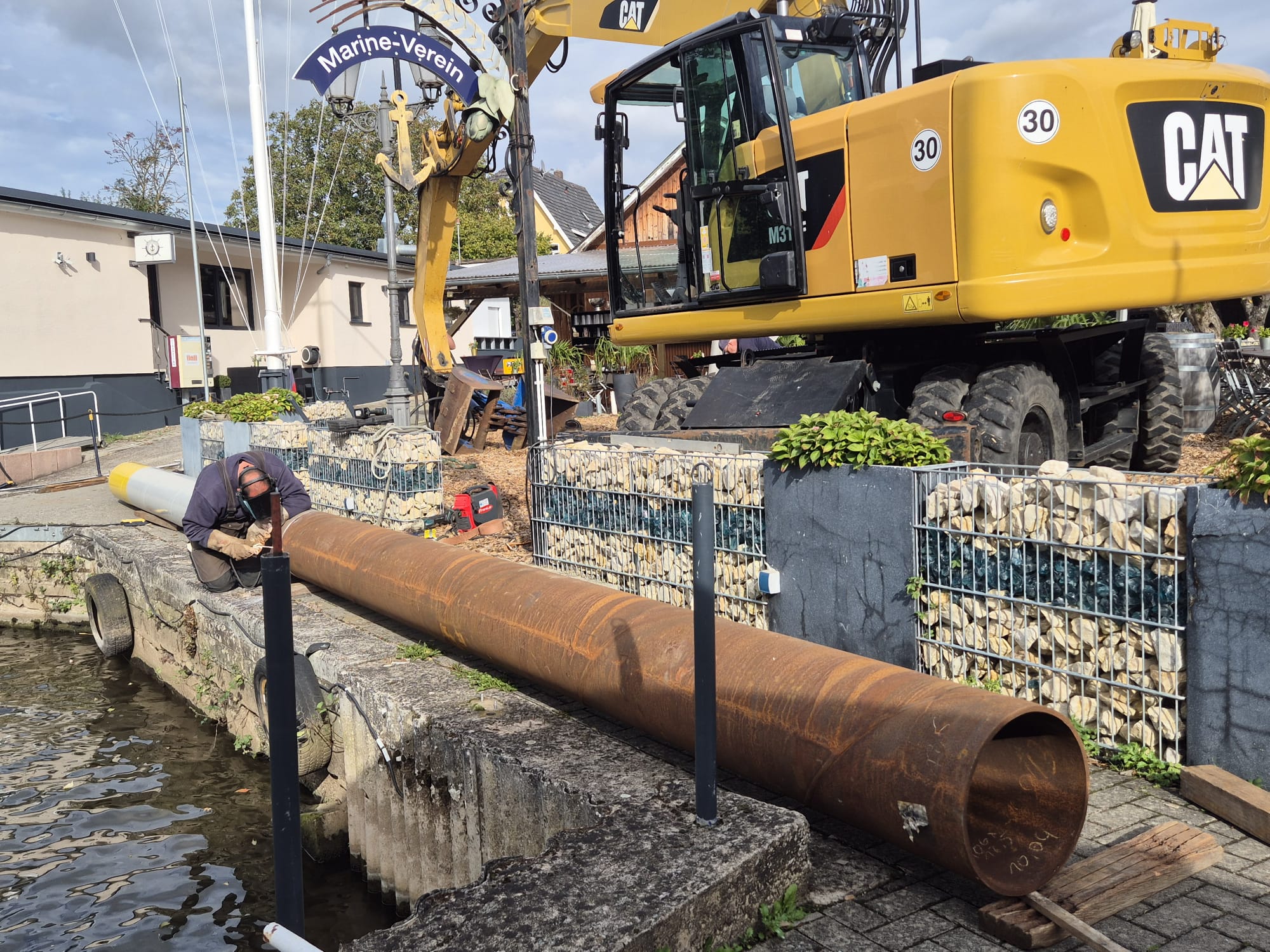 Alles in allem hat die Montage fünf Tage gedauert und alles zusammen rund 100.000 € gekostet. Dafür hat der Marine-Verein nun aber eine Steganlage, die ihresgleichen hier an der Lahn sucht und für die nächsten Jahre eine Hafenanlage bietet.