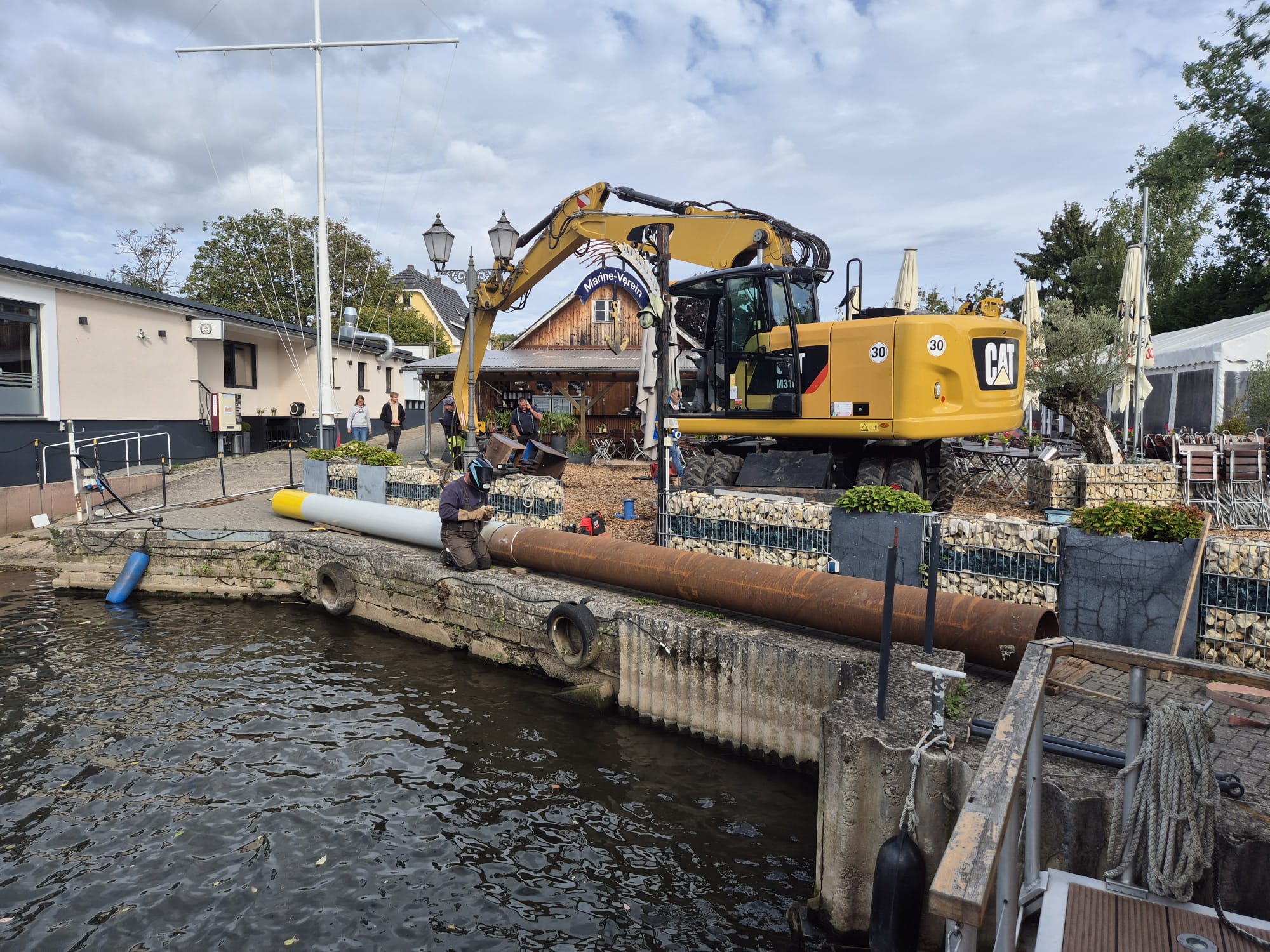 Alles in allem hat die Montage fünf Tage gedauert und alles zusammen rund 100.000 € gekostet. Dafür hat der Marine-Verein nun aber eine Steganlage, die ihresgleichen hier an der Lahn sucht und für die nächsten Jahre eine Hafenanlage bietet.